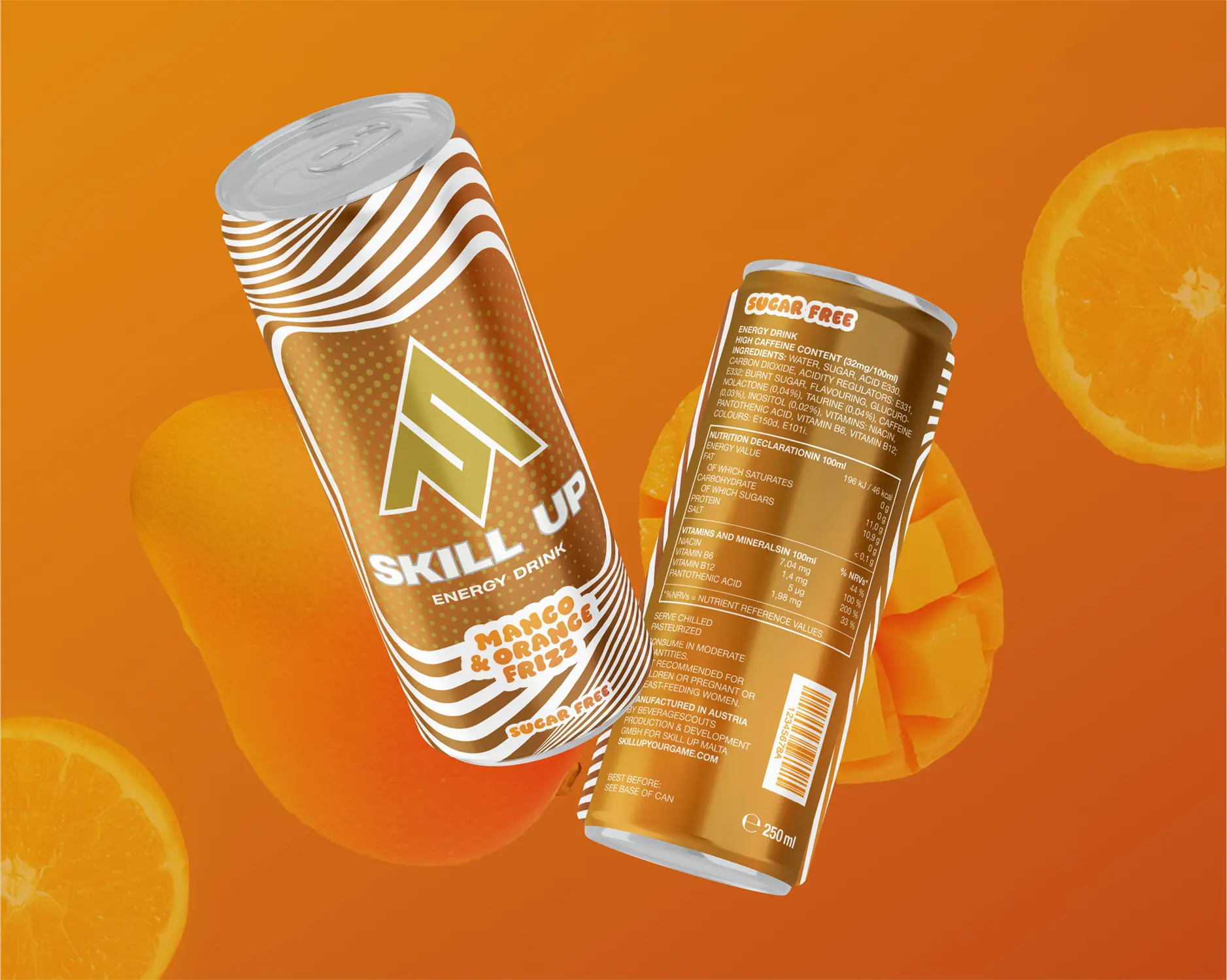 SKILL UP approached us with a challenge to design packaging for four new energy drink flavours that would expand the brand beyond its signature black “Original” can. The goal was to create a visual identity that felt fresh, dynamic, and unmistakably part of the SKILL UP collection.